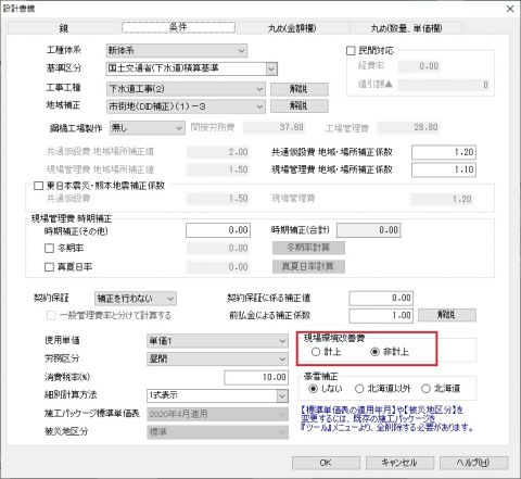 現場環境改善費の設定はどこですればよいでしょうか?
