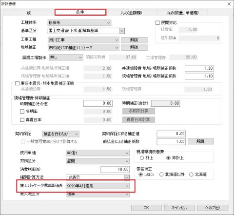 「鏡」→「条件」の「施工パッケージ標準単価表」をご確認ください。
