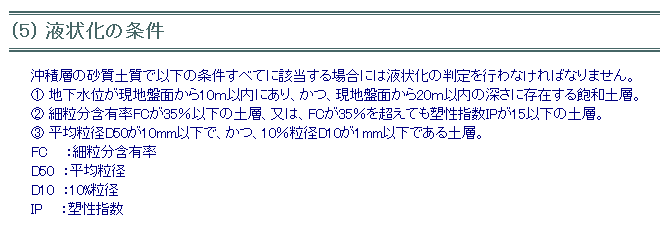 ② 細粒分含有率FC が35%以下の土層、又は、FC が35%を超えても塑性指数IP が15 以下の土層。