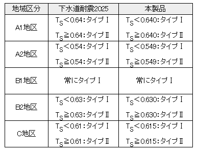 本製品では下表の固有周期の時に、タイプⅠとタイプⅡが切り替わります。