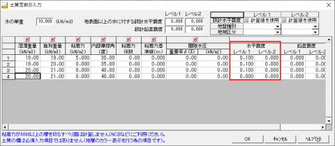 この場合、水平震度>レベル2に、0.000より大きい値の入力をお願いします。