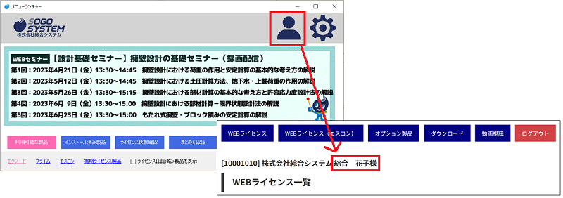 ログイン者名が「使用者」になっていれば「使用者」としてログインしている状態です。