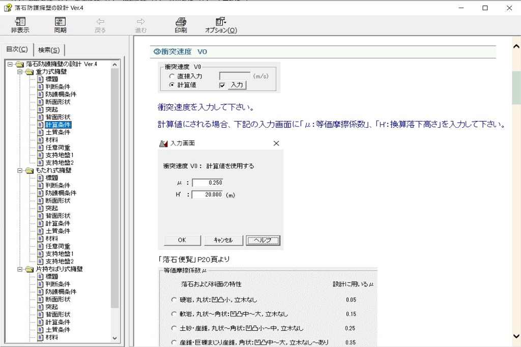 本システムは「落石対策便覧」に基づき、落石防護擁壁の設計を行います。