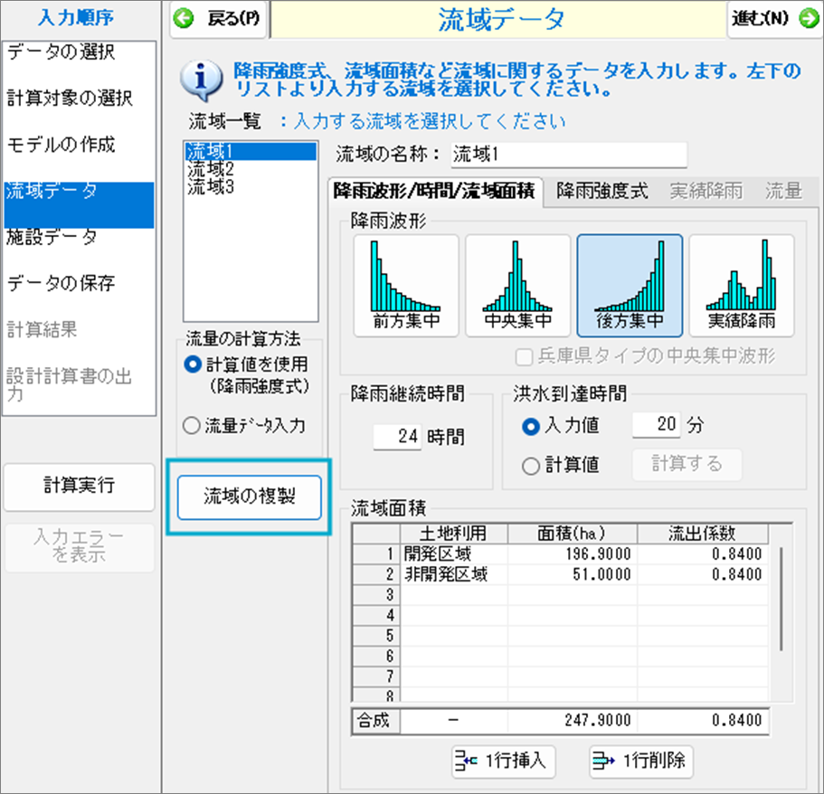 別流域に同一の内容がある場合、複製機能の利用で入力作業の省略が可能になりました。