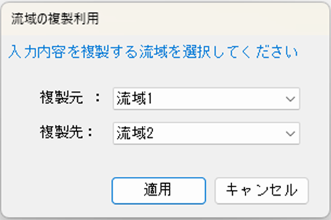 選択した複製元から複製先へ、流域データの全情報が複製されます。