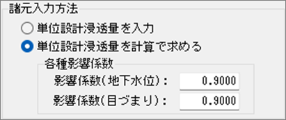旧版で「各種影響係数」の単一入力から、「影響係数(地下水位)」「影響係数(目詰まり)」の2項目の入力へ変更しました。