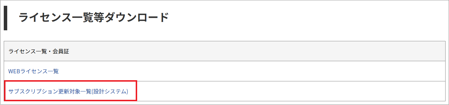 2. 「サブスクリプション更新対象一覧(設計システム)」をクリックします。